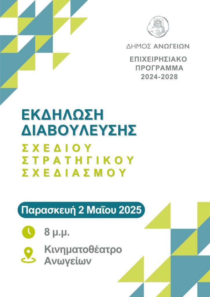2/5/2025 έως 2/5/2025 στις 20:00 FacebookTwitterWhatsAppPinterest EmailLinkedIn ΕΚΔΗΛΩΣΗ ΔΙΑΒΟΥΛΕΥΣΗΣ ΣΧΕΔΙΟΥ ΣΤΡΑΤΗΓΙΚΟΥ ΣΧΕΔΙΑΣΜΟΥ