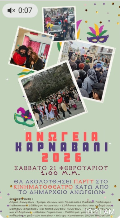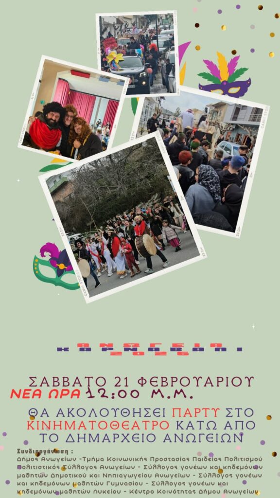 21/2/2026 έως 21/2/2026 στις 13:00 FacebookTwitterWhatsAppPinterest EmailLinkedIn Καρναβάλι Ανώγεια 2026